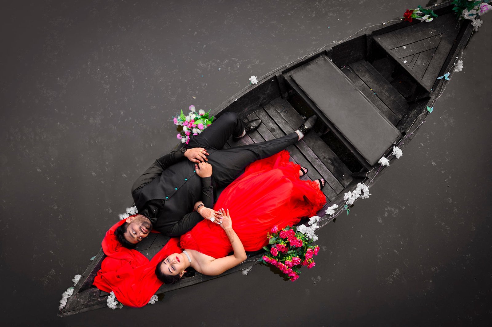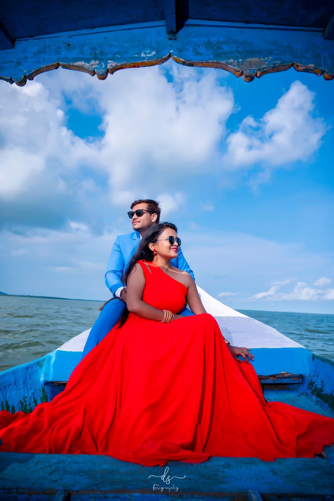 pre wedding in water boat