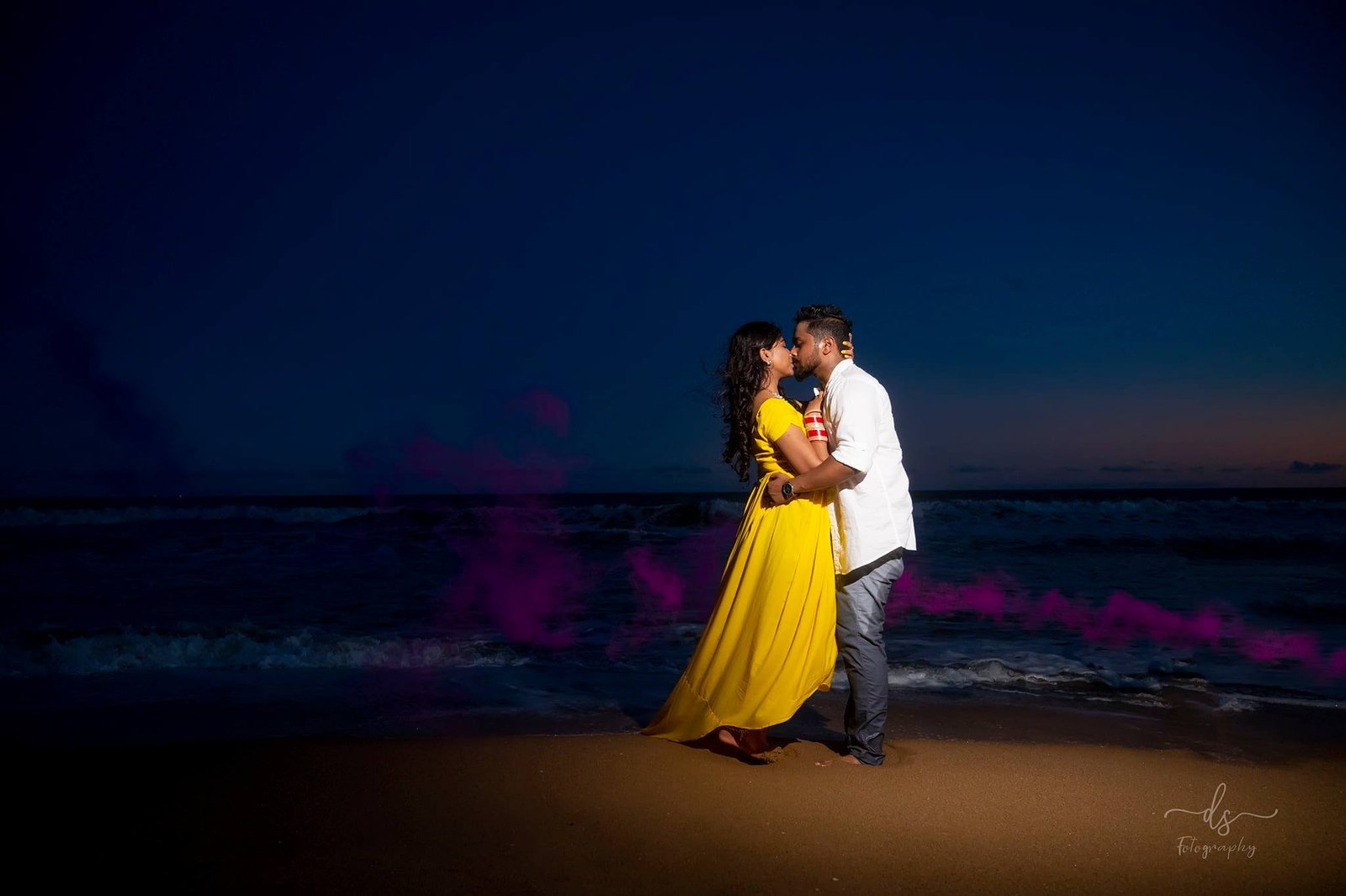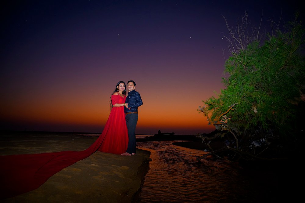 pre wedding low light in see beach